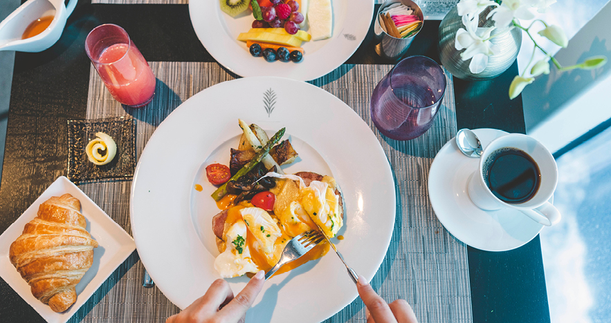 If you like buffets, head to The Oceanview Café. They had a beautiful cake display one day at lunch. The floor-to-ceiling windows are truly amazing, and this design truly brings the outside in.